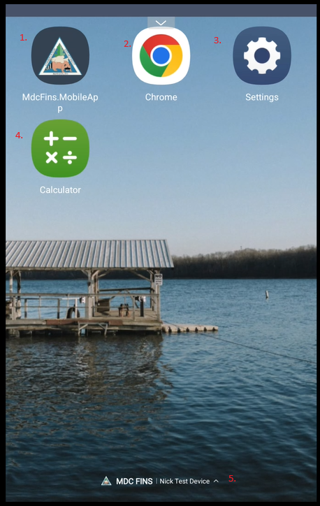 The homepage of your Samsung device, also known as the Kiosk, is where you will find the MDC Mobile Application, settings, device specific information, and any other application that has been approved and added to the home screen like Google Chrome.